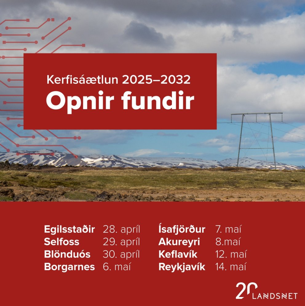 Þann 30. apríl nk. verður Landsnet með opinn fund í Eyvindarstofu á Blönduósi kl. 16:00 þar sem farið verður yfir og kynnt hvernig þau ætla að byggja upp öflugt, sveigjanlegt og sjálfbært flutningskerfi fyrir framtíðina. Þessi fundur er einn af átta sem Landsnet verður með í ferð sinni um landið þar sem þau ætla að ræða við fólk, svara spurningum og hlusta. Þetta er opið samtal og þú ert hluti af því.
