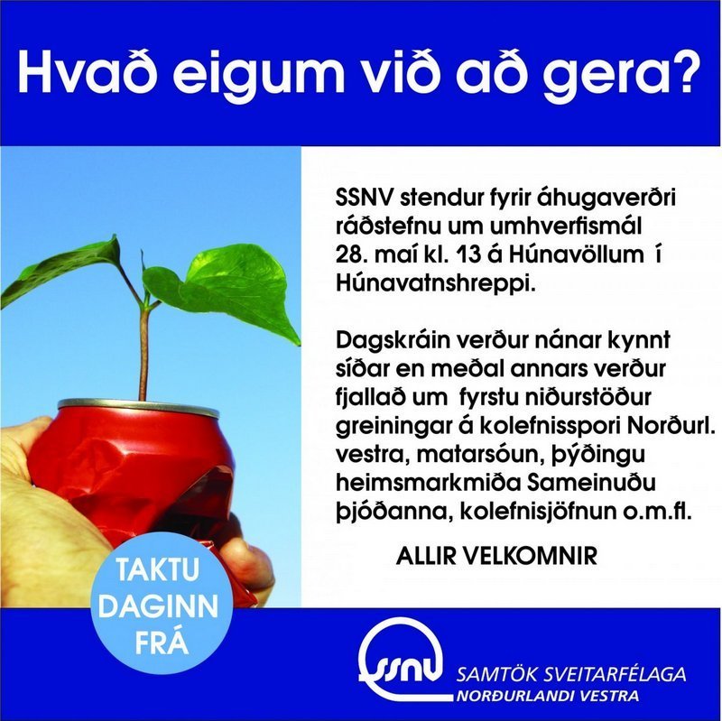 Þriðjudaginn 28. maí nk. standa Samtök sveitarfélaga á Norðurlandi vestra fyrir ráðstefnu um umhverfismál á Húnavöllum. Á ráðstefnunni mun Stefán Gíslason kynna fyrstu niðurstöður greiningar á kolefnisspori landshlutans en greiningin er hluti af áhersluverkefni samtakanna fyrir árnin 2018 og 2019. Auk erindis Stefáns verða flutt erindi um heimsmarkmiðin, tengingu heimsmarkmiða inn í stefnumótun sveitarfélaga og landsskipulagsstefnu, matarsóun, reynslusögu fjölskyldu af flokkun og umhverfisvitund ásamt fleiru.