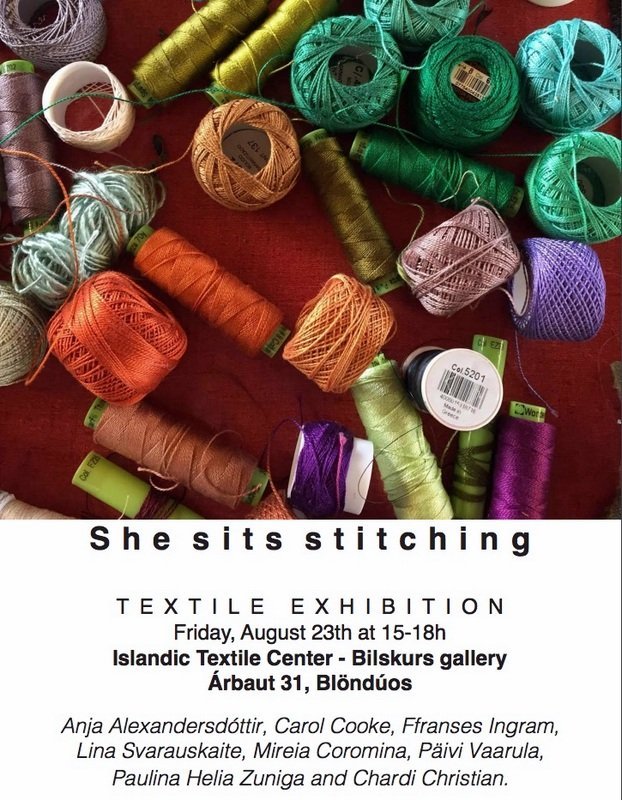 Á morgun, föstudaginn 23. ágúst milli klukkan 15 og 18 verður haldin sýning á verkum textíllistamanna sem dvalið hafa í Kvennaskólanum á Blönduósi að undanförnu. Sýningin ber yfirskriftina She sits stitching og verður til húsa í Bóilskúrsgalleríinu að Árbraut 31.