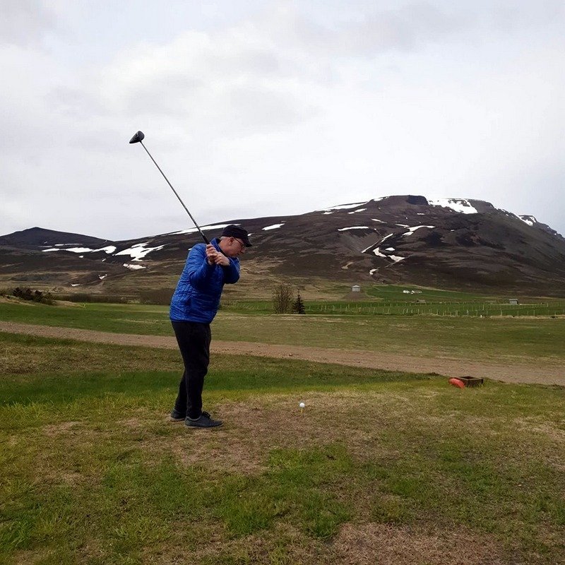 Margeir segir það helst hafa komið sér á óvart að hafa farið nokkrum sinnum í golf í veðri sem hann hefði annars haldið sig inni. „Ég er orðinn meiri útivera en ég var,“ segir Margeir sem mælir með því að fólk prófi að spila golf. „Ég get hiklaust mælt með því að fólk fari að iðka golfíþróttina. Hreyfingin, útiveran, félagsskapurinn, allt er þetta frábært. Það er svo bónus að lækka forgjöfina hafi maður áhuga á því. Það eiga allir sem tök hafa á því að kynna sér golfið.“