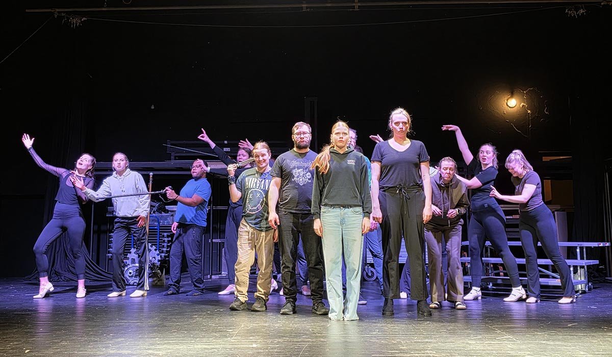Frá æfingu Leikflokks Húnaþings vestra á Addams fjölskyldunni. MYND AÐSEND