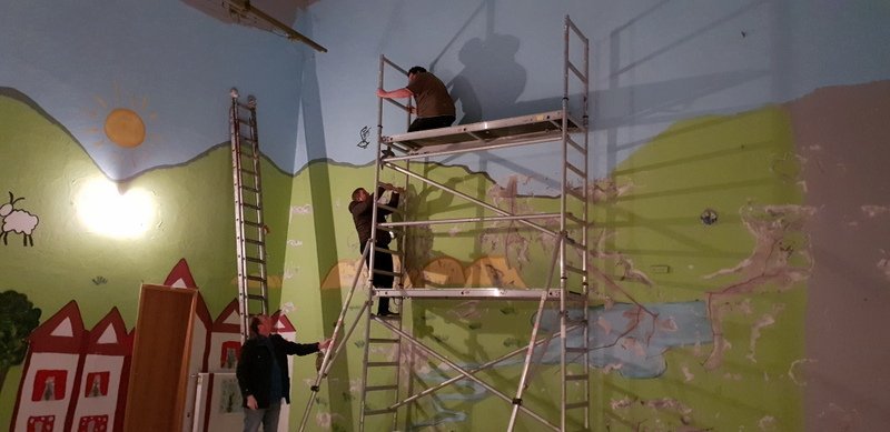 Um síðustu helgi tóku sjálfboðaliðar sig saman og máluðu sviðið í Félagsheimilinu, bæði veggi og gólf, drapperingar voru settar í hreinsun og sviðið undirbúið fyrir nýjar ljósagræjur.