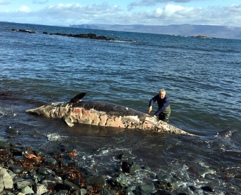 Á vef NNV segir að varla séu meira en nokkrir dagar síðan dýrið drapst og marrar það að hálfu leyti í kafi í fjörunni. Sjófarendur urðu varir við andarnefju inn á Skagafirði fyrir nokkrum dögum, ekki langt frá þeim stað sem hvalinn rak. Náttúrustofa NV rannsakaði dýrið og tók erfðasýni og fleiri vefjasýni til greininga hjá hvalasérfræðingum Hafrannsóknastofnunar.