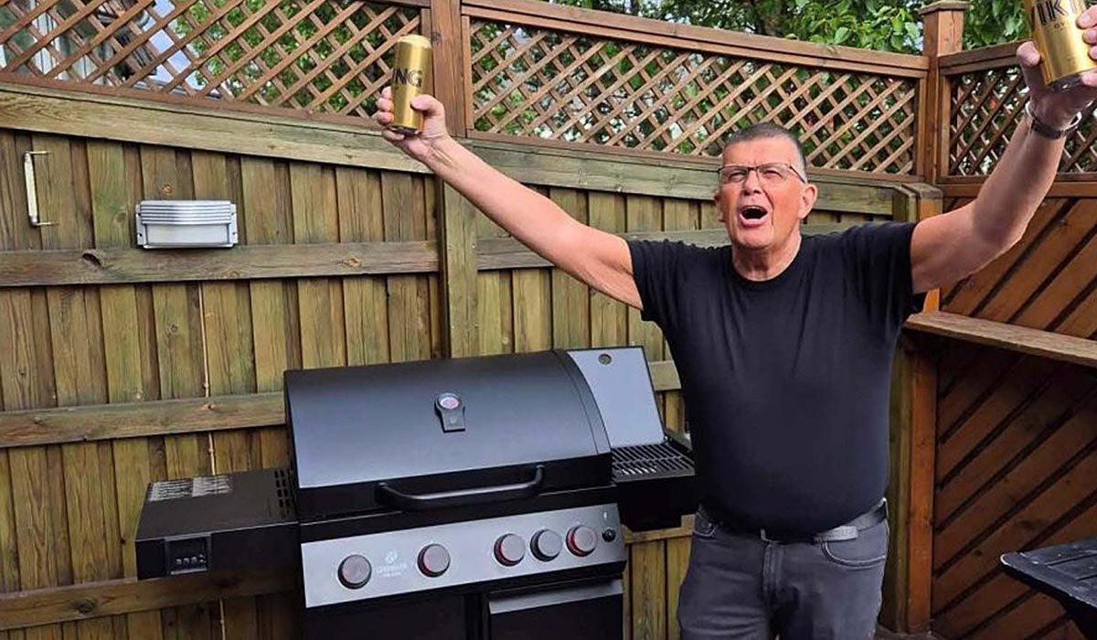 Að grilla og að vera grillaður. Árni Sig í góðum gír. MYND AF SKAGASTRÖND.IS
