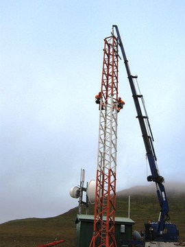 Í gær var nýtt fjarskiptamastur sett upp við fjarskiptastöð Mílu í Reykjaneshyrnu í Árneshreppi á Ströndum. Mastrið er 18 metra hátt og á að bæta fjarskiptasambandið frá Hnjúkum við Blönduós, við Ávíkurstöðina í Reykjaneshyrnu í Árneshreppi.