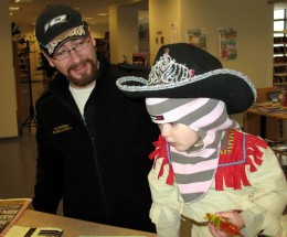 Öskudagurinn var haldin hátíðlegur á Bókasafninu á Hvammstanga en þangað mætti mikill fjöldi barna og söng fyrir starfsmenn og Bangsa sem gaf þeim harðfisk fyrir.