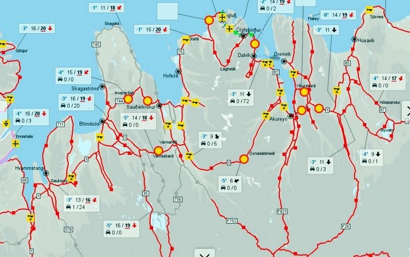 Allir vegir eru ófærir eða lokaðir á Norðurlandi samkvæmt heimasíðu Vegagerðarinnar og beðið er með mokstur þangað til í fyrramálið. Vegurinn um Vatnsskarð og Þverárfjall eru lokaður vegna veðurs líkt og Holtavörðu- og Öxnadalsheiði. Ekki verður farið í mokstur fyrr en í fyrramálið. Siglufjarðarvegur er lokaður vegna veðurs og snjóflóðahættu sem og Ólafsfjarðarmúli.