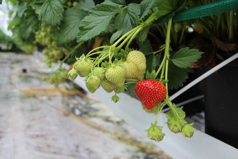 Ræktunin fer fram í tveimur 500 m2 húsum. Í öðru þeirra vaxa bústin jarðarber sem eru stærsti hluti framleiðslunnar en í hinu dafna gúrkur og tómatar og hinar ýmsu kryddjurtir. Einnig rækta þau salat, grænt og rautt grænkál og spínat í útiræktun. „Upphaflega pælingin var að reyna að rækta í allri jörðinni sem er rétt tæpur hektari. En svo komumst við að því að það er ekki hægt að bíða eftir því að það komi í ljós hvort hið íslenska sumar kemur eða ekki þannig að við erum að íhuga að festa kaup á köldu gróðurhúsi til að hafa eitthvert veðuröryggi innandyra. Við ætlum ekki að fara út í fleiri upphituð hús,“ segir Kristín og bætir við að trúlega eigi þau eftir að fjölga gúrku- og tómatplöntum til að mæta þörfum veitingahúsanna í nágrenninu. „En svo erum við líka svolítið nýjungagjörn og ég gæti séð fyrir mér að vera kannski með lítil grasker og þarna erum við að prófa eggaldin,“ segir hún og bendir á gerðarlegar plöntur í einu beðinu.