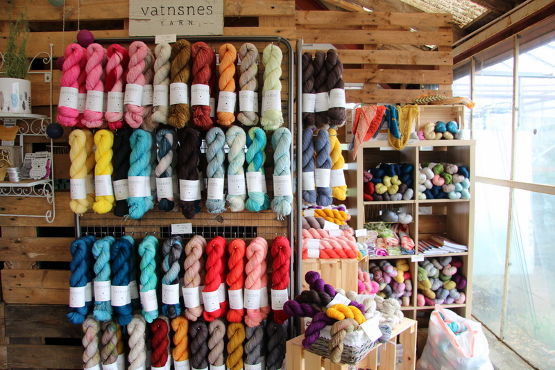 Þegar komið er inn í Skrúðvang er nánast óhjákvæmilegt að litríkar garnhespur sem hanga á einum veggnum fangi huga fólks, allavega þeirra sem hafa gaman af prjónaskap. Kristín hefur um nokkurt skeið fengist við að lita og selja garn undir merkinu Vatnsnes Yarn og fæst það í vefverslun hennar, vatnsnesyarn.is, en einnig í nokkrum búðum í Reykjavík og í verslun á Ísafirði og á Sauðárkróki. Hún segist flytja allt sitt garn inn og leggur mikla áherslu á að allt sem hún selur sé framleitt á vænan máta fyrir bæði náttúru, menn og dýr. „Ég kaupi garnið ekki inn hvar sem er, ég vel að panta frá þeim spunaverksmiðjum sem hafa mannúðleg sjónarmið og hugsa um dýraverndun og um náttúruna,“ segir Kristín sem leggur auðsýnilega mikla alúð í framleiðslu sína enda um sérlega fallega vöru að ræða.