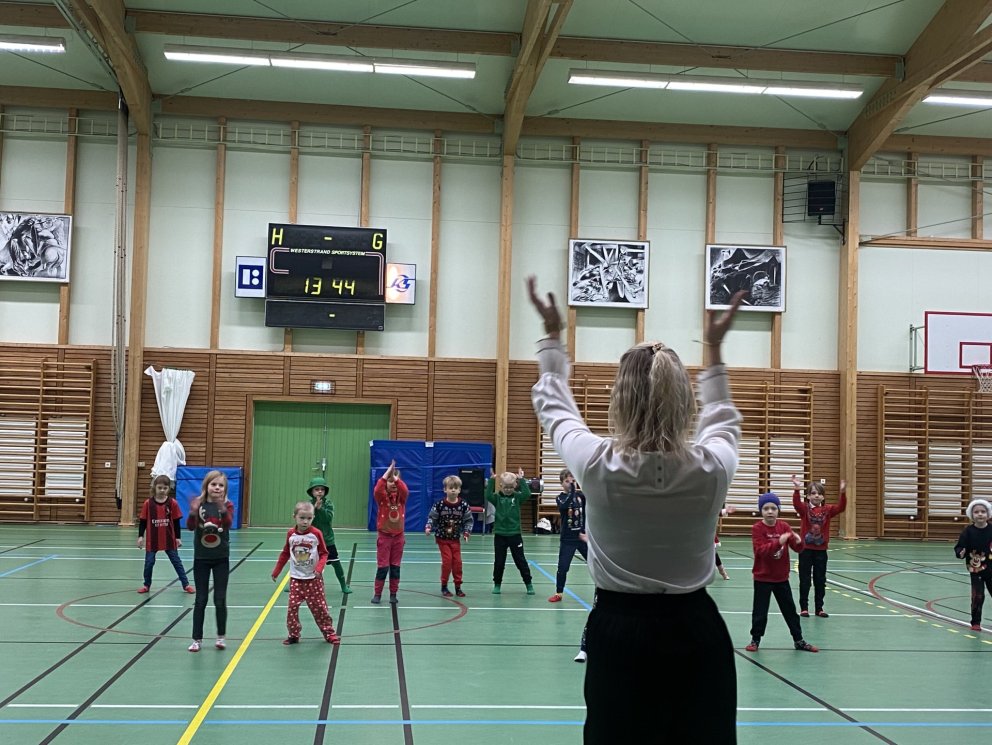 Ingunn mundi ekki hvað hún væri búin að koma mörg ár og kenna dans í Varmahlíðarskóla en þau eru orðin ansi mörg. Hver bekkur eða bekkjareining fær 5x40 mín. í kennslu og sagði hún að árangurinn sem börnin næðu á ekki meiri tíma væri ótrúlegur. Hver bekkjareining kom svo fram og dansaði fyrir áhorfendur. Eftir sýningu var svo það sem stendur yfirleitt uppúr hjá börnunum þegar þau fá að sækja aðstandendur eða kennara og marsera. Brúin sem búin var til og fara þurfti undir var ansi löng og lagið spilaðist sjö ferðir áður en marseringunni lauk. Síðan var öllum boðið uppá kaffi, djús, piparkökur og mandarínur í skólanum, virkilega skemmtilegt uppbrot í skólanum í aðdraganda jóla. Fleiri myndir frá danssýningunni er að finna á heimasíðu skólans.HÉR
