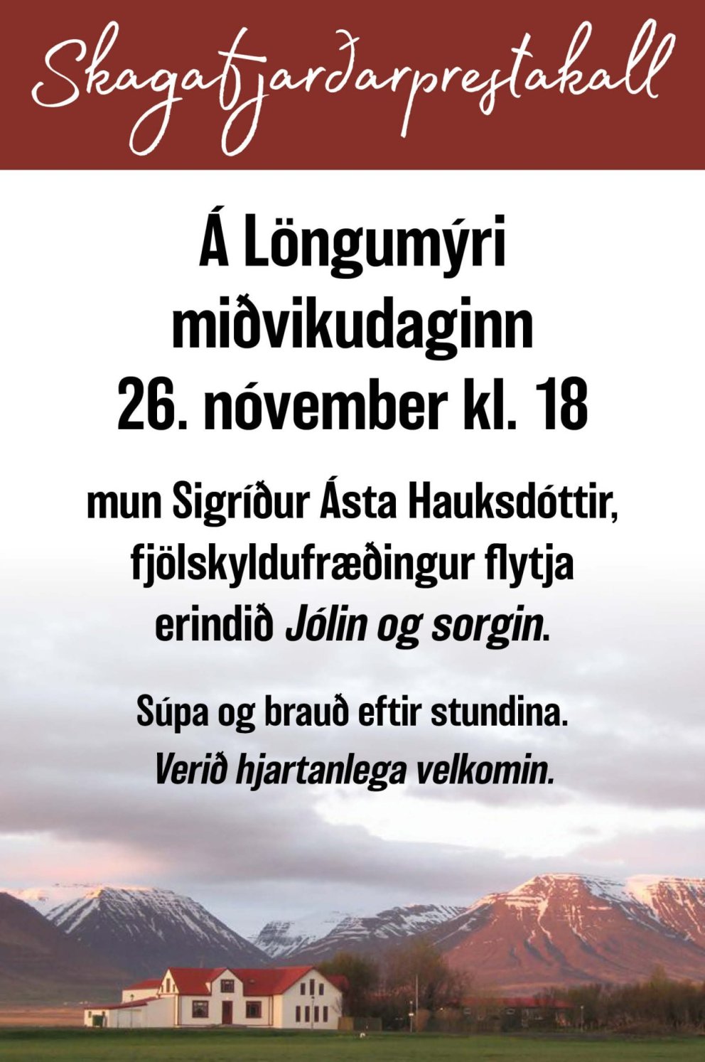 Erindið Jólin og sorgin á Löngumýri miðvikudaginn 26. nóvember kl. 18.