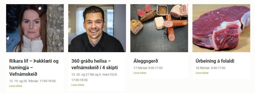 Í næstu viku verða fjögur námskeið í boði hjá Farskólanum. Það eru: Ríkara líf - þakklæti og haimgja, 360 gráðu heilsa, Áleggsgerð og Úrbeining, og um að gera að skrá sig á þau námskeið sem ykkur líst á:) Stéttarfélögin Aldan, Samstaða, Kjölur, Sameyki og Verslunarmannafélag Skagafjarðar greiða námskeiðsgjöldin að fullu fyrir sína félagsmenn. (Þátttakendur greiða sjálfir fyrir hráefni þar sem það á við) Athugið að námskeiðin eru öllum opin og minna þau aðra en félagsmenn þessara félaga á að kanna rétt sinn hjá sínu stéttarfélagi.