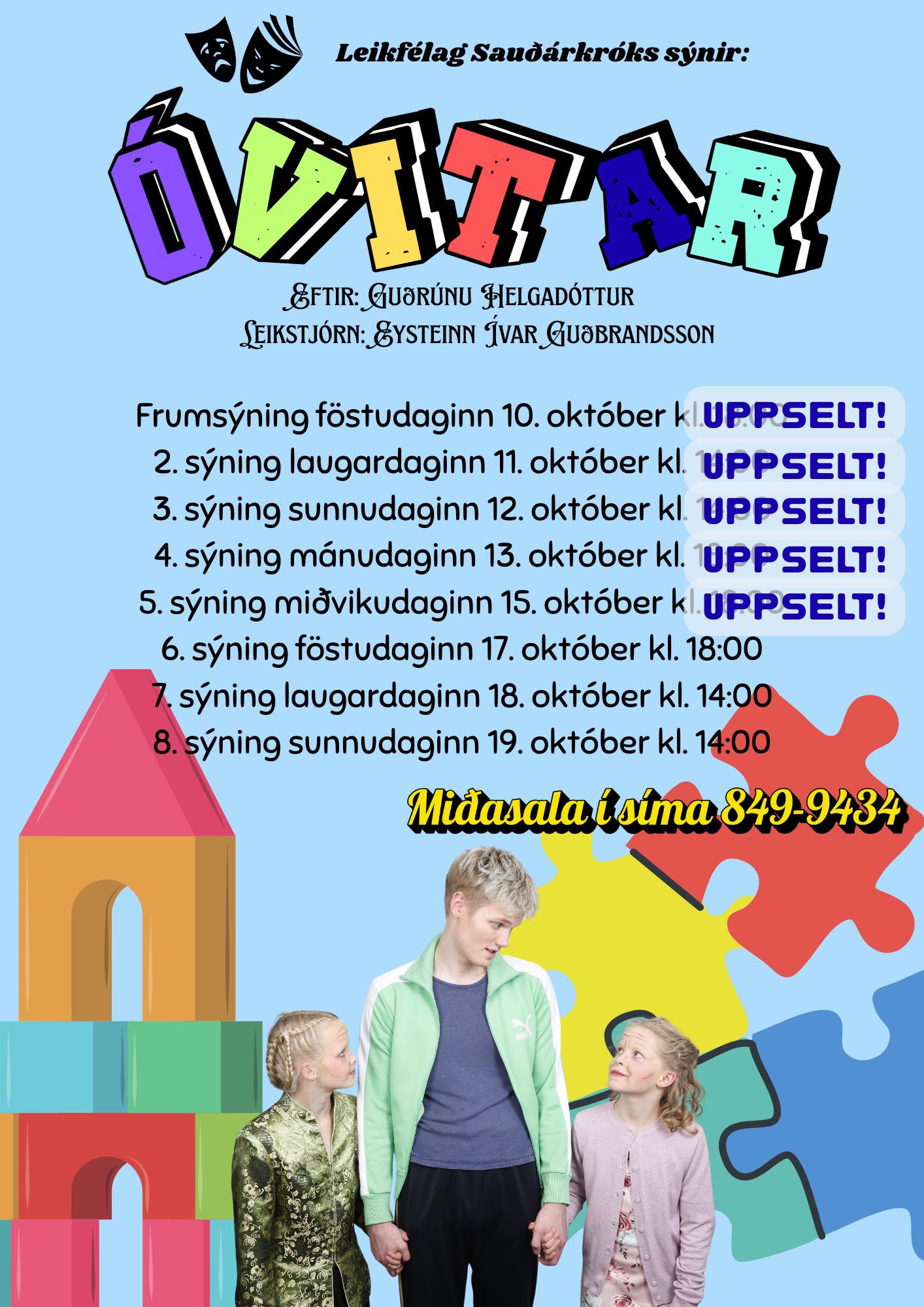 Leikfélag Sauðárkróks frumsýnir í kvöld leikritið Óvitar eftir Guðrúnu Helgadóttur. Mikill spenningur er í leikhópnum enda alltaf gaman að frumsýna eftir stífar æfingar undanfarið.