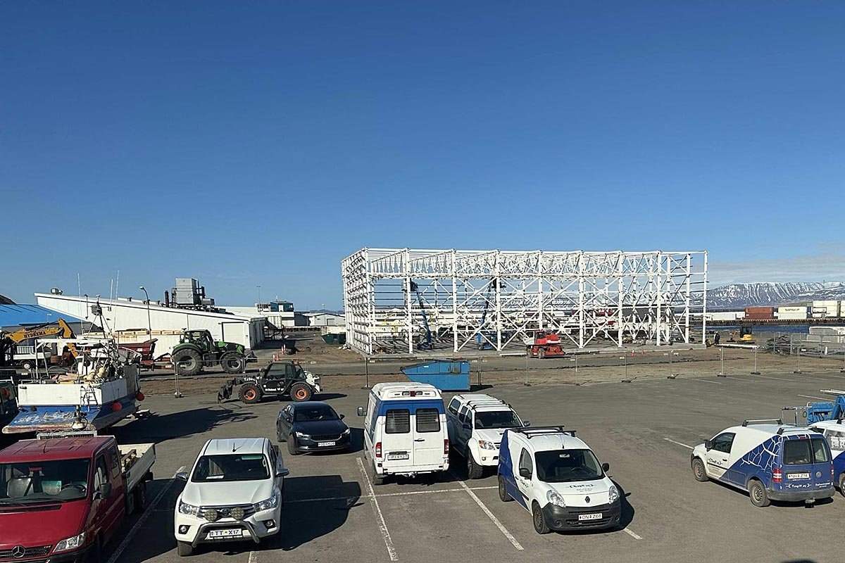 Feykir sagði frá því í nóvember að rækjuvinnslan Dögun á Sauðárkróki hefði hafið framkvæmdir við byggingu 1600 fermetra frystiklefa á Hesteyri á Sauðárkróki. Ekki er annað að sjá en að verkinu miði vel en í vetur var plata steypt og nú hefur grindin verið reist.