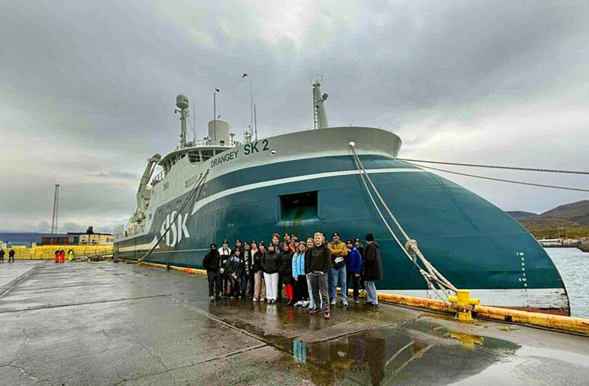 Síðastliðinn þriðjudag fengu 16 nemendur og sex kennarar leiðsögn um Drangey SK 2 í Sauðárkrókshöfn. Í frétt á vef FISK Seafood segir að hópurinn, sem samanstóð af nemendum og kennurum frá Íslandi, Tékklandi, Spáni og Póllandi, sé að vinna verkefni á vegum Erasmus+ sem fjallar um alþjóðlegar upplýsingatæknikeppnir til að efla gæði framhaldsskólamenntunar.