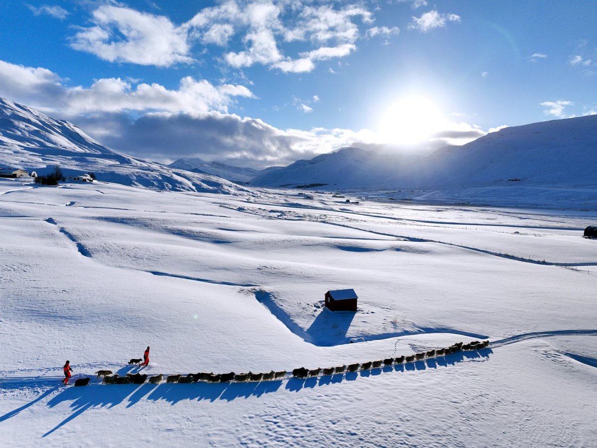Þessa bráðskemmtilegu drónamynd hér að ofan tók Halldór Gunnar Hálfdansson bóndi á Molastöðum í Fljótum í síðustu viku þegar veturinn lét á sér kræla. Feykir nýtti tækifærið og spurði bóndann út í veður og heimtur.