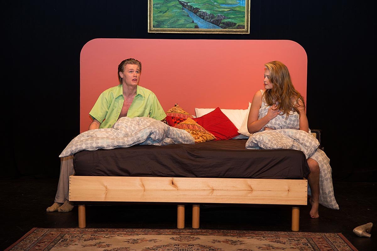 Frá sýningu Leikfélags Sauðárkróks á Sæluvikustykkinu Á sama tíma að ári. Ísak Agnarsson og Lillý. MYND: GG