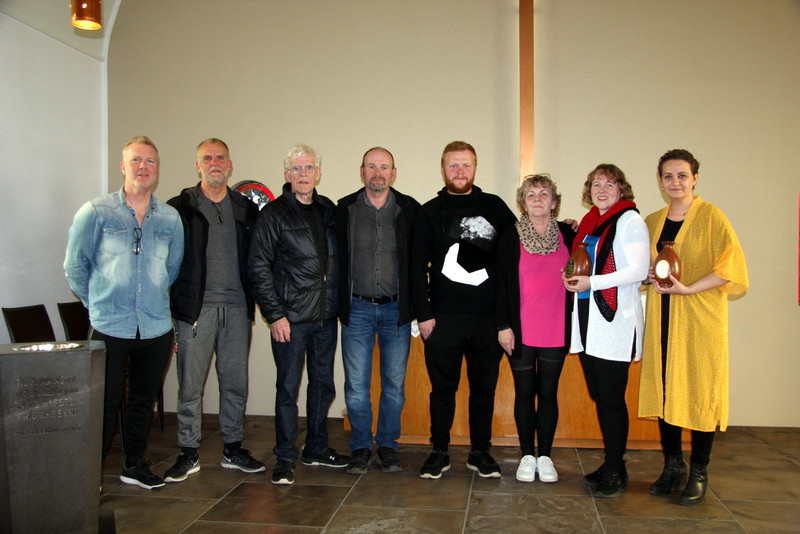 Björn Níelsson, faðir Guðrúnar, afhenti sr. Höllu Rut Stefánsdóttur, sóknarpresti á Hofsósi og Kristínu Bjarnadóttur, formanni sóknarnefndar, gjafirnar. Vasarnir eru gerðir úr járnviði og var það kunningi Björns sem renndi þá. Séra Halla þakkaði fjölskyldunni gjafirnar og þann hlýhug sem kirkjunni er sýndur með þeim.
