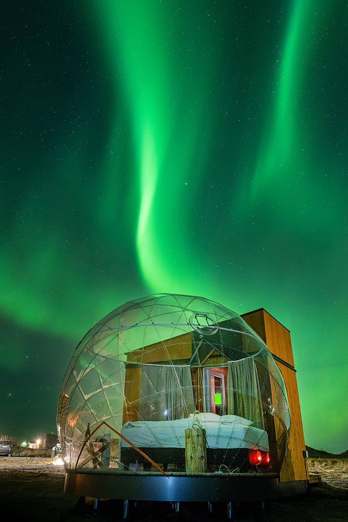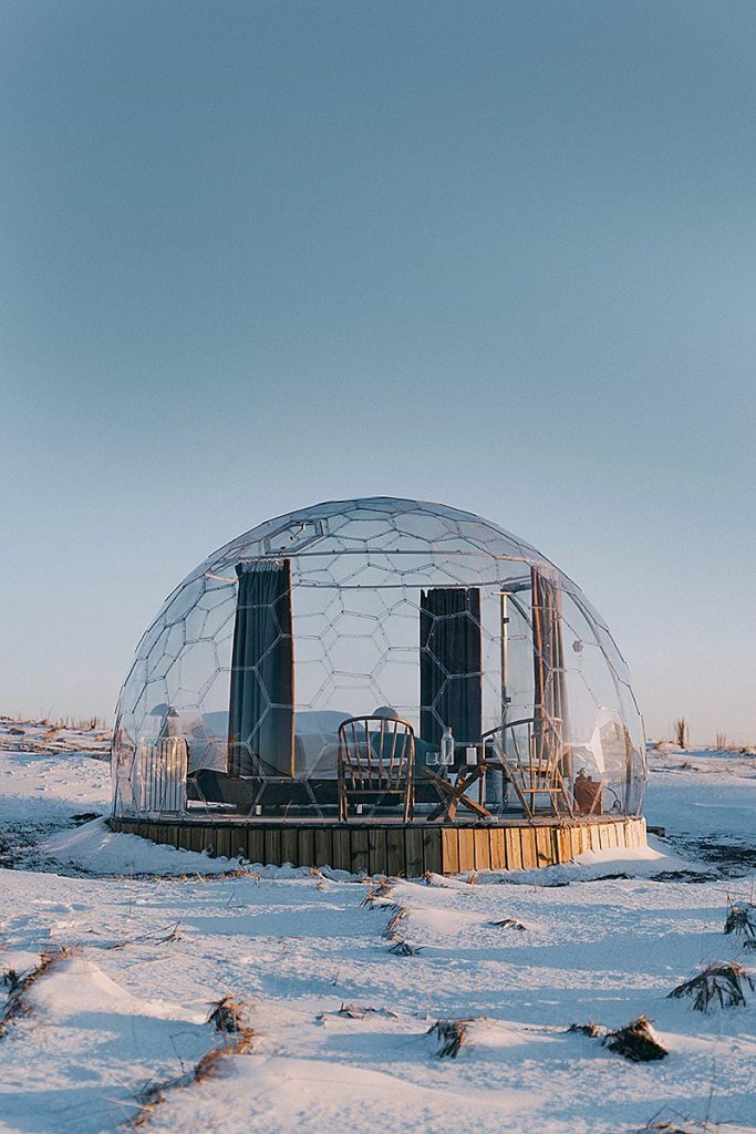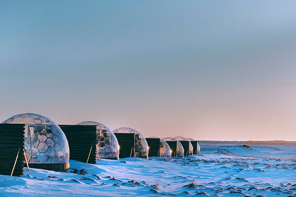 Hér má sjá kúluhús eins og þau sem verða í Víðidalnum. Myndirnar sem hér fylgja sýna kúluhús Aurora Igloo við Hellu á Suðurlandi. AÐSENDAR MYNDIR