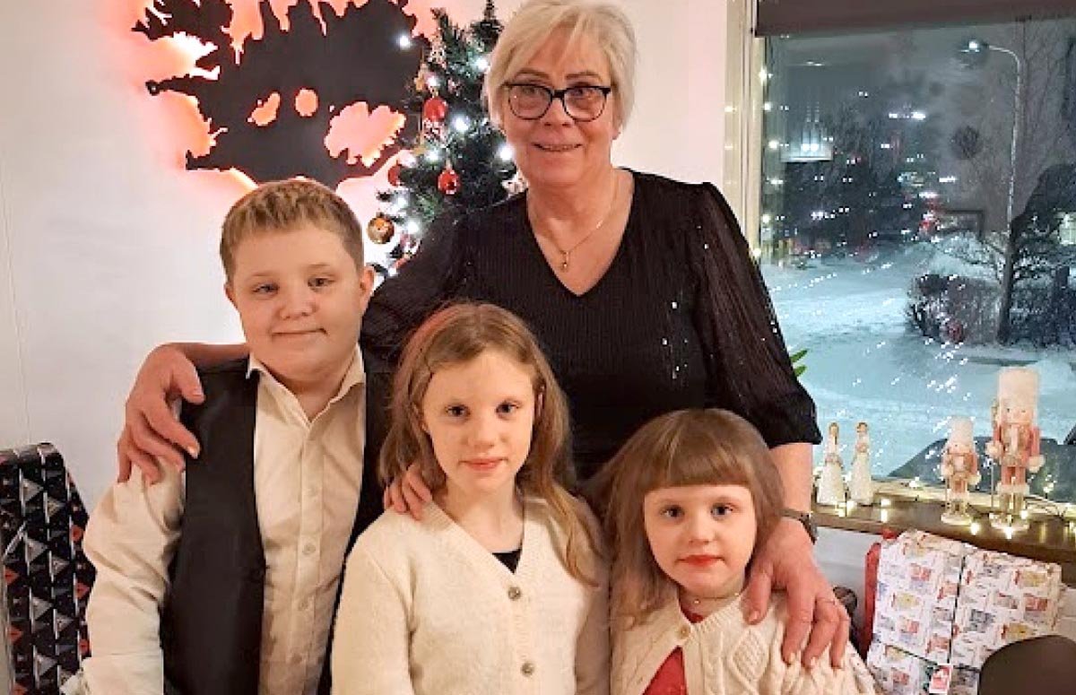 Gunna með hluta barnabarnanna; Agli, Elsu og Maríu, á jólunum. AÐSEND MYND