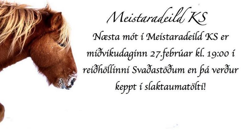 Annað mót Meistaradeildar KS fer fram í kvöld, 27. febrúar í reiðhöllinni Svaðastöðum á Sauðárkróki, þegar keppt verður í slaktaumatölti (T2)! Höskuldur Jónsson og Svörður frá Sámsstöðum, sem keppa fyrir Leiknisliðið, munu ríða á vaðið og hefja keppni klukkan 19. Eftir gæðingafimina sem fram fór fyrir tveimur vikum trónir Ísólfur Líndal Þórisson á toppnum í einstaklingskeppninni með 28 stig og lið hans, Skoies/Prestige, leiðir liðakeppnina með 76 stig.