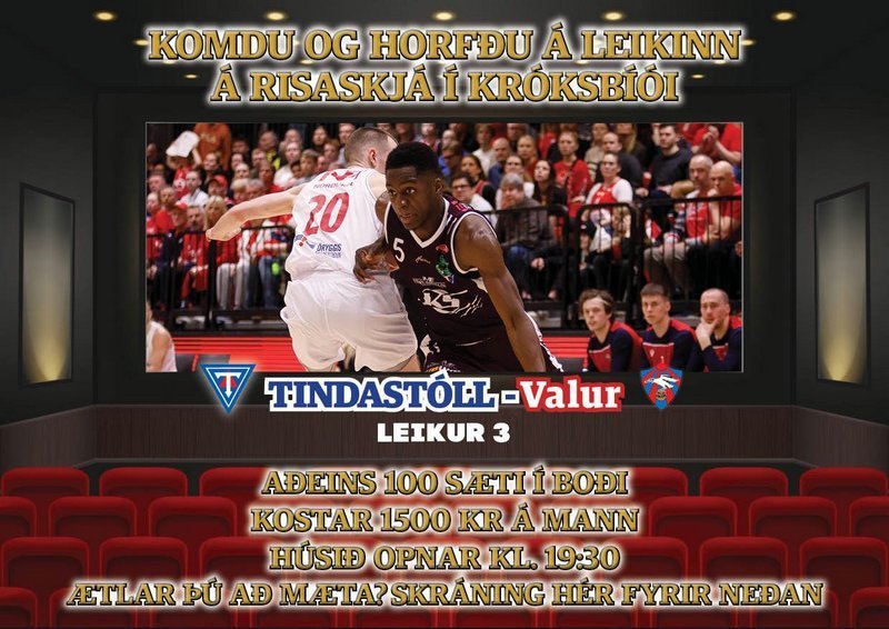 En fyrir það norðanfólk sem ekki kemst suður á leikinn verður hann sýndur á risaskjánum í Króksbíói. „Þetta gerist hreinlega ekki betra! Aðeins 100 sæti í boði - tryggðu þér sæti með því að skrá þig hér fyrir neðan.... Að sjálfsögðu verður hægt að kaupa popp og með því í sjoppunni. ÁFRAM TINDASTÓLL!!!“ segir í færslu á Facebooksíðu körfuknattleiksdeildar Tindastóls þar sem skráning fer fram. Sjá HÉR