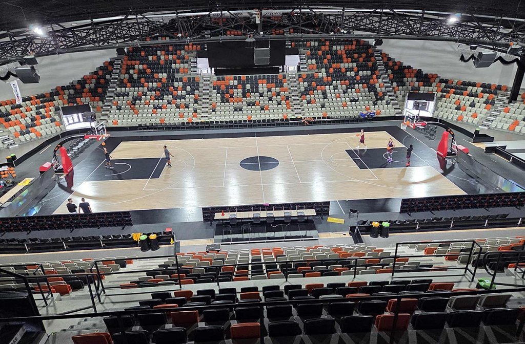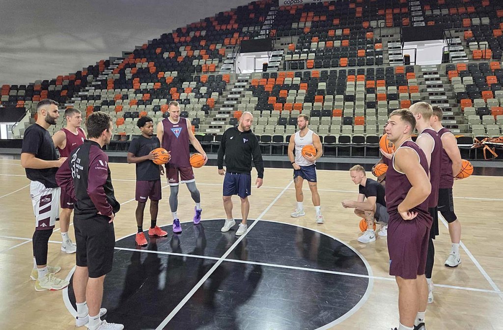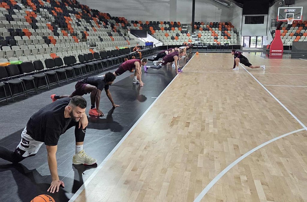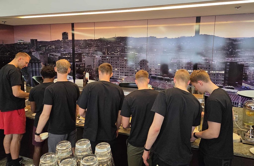 Lið Tindastóls á fjölum Gopass Arena í Bratislava fyrir leik. Myndir frá því fyrir leik má sjá hér neðst í fréttinni. MYNDIR: RÚNAR BIRGIR
