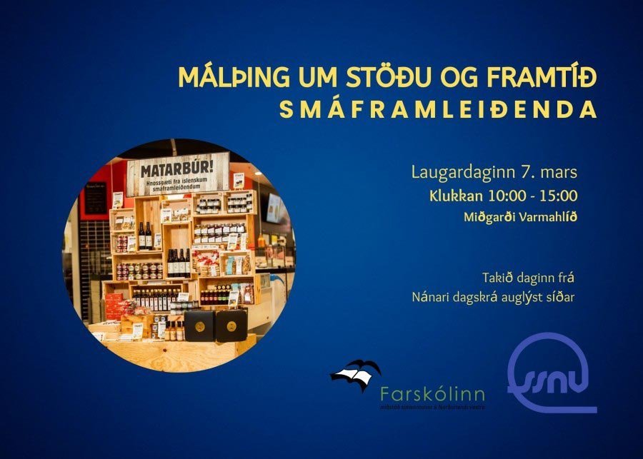 Samtök sveitarfélaga á Norðurlandi vestra og Farskólinn - miðstöð símenntunar á Norðurlandi vestra standa fyrir málþingi um stöðu og framtíð smáframleiðenda laugardaginn 7. mars næstkomandi klukkan 10-15 í Miðgarði í Varmahlíð. Nánari dagskrá málþingsins verður auglýst síðar en líklegt má telja að til umræðu verði bæði áskoranir og tækifæri sem smáframleiðendur standa frammi fyrir á markaði.