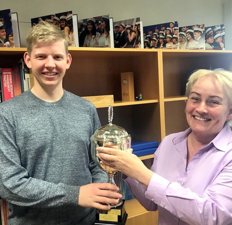 Fyrir helgi tók Ingileif Oddsdóttir,skólameistari og fyrirliði liðs starfsfólks, á móti bikarnum úr höndum Hákonar Inga Rafnssonar sem er íþróttaformaður NFNV og fyrirliði golfliðs nemenda.