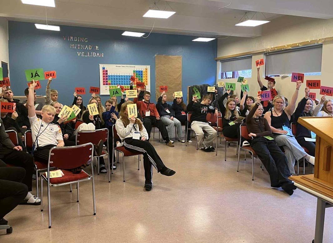 Á vef Varmahlíðarskóla er sagt frá því að í gær hafi skólinn fengið heimsókn frá Skólaþingi en það hefur verið starfrækt í Reykjavík frá árinu 2007. Síðustu tvö ár hafa fulltrúar Skólaþings heimsótt skóla vítt og breitt um landið. Tveir starfsmenn úr fræðsluteymi skrifstofu Alþingis mættu í Varmahlíð í gær og leyfðu nemendum að spreyta sig á eins konar hlutverkaleik.