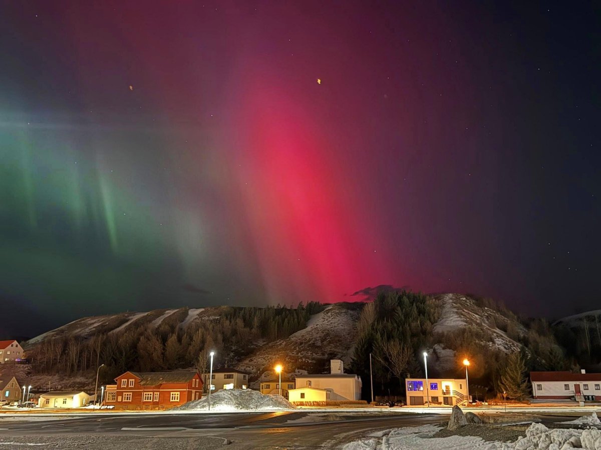 Það var heldur betur boðið upp á listsýningu í gærkvöldi og stjörnubjartur himininn var striginn. Það voru enda ófáir sem rifu upp snjallsímann og gerðu tilraunir til að mynda dýrðina; græn og rauð dansandi norðurljós.