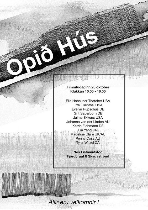 Nes listamiðstöð á Skagaströnd verður með opið hús í dag, fimmtudaginn 25. október, og munu listamenn sem dvelja í miðstöðinni kynna þar listsköpun sína. Húsið verður opið frá klukkan 16:00 til 18:00 og eru allir velkomnir þangað.