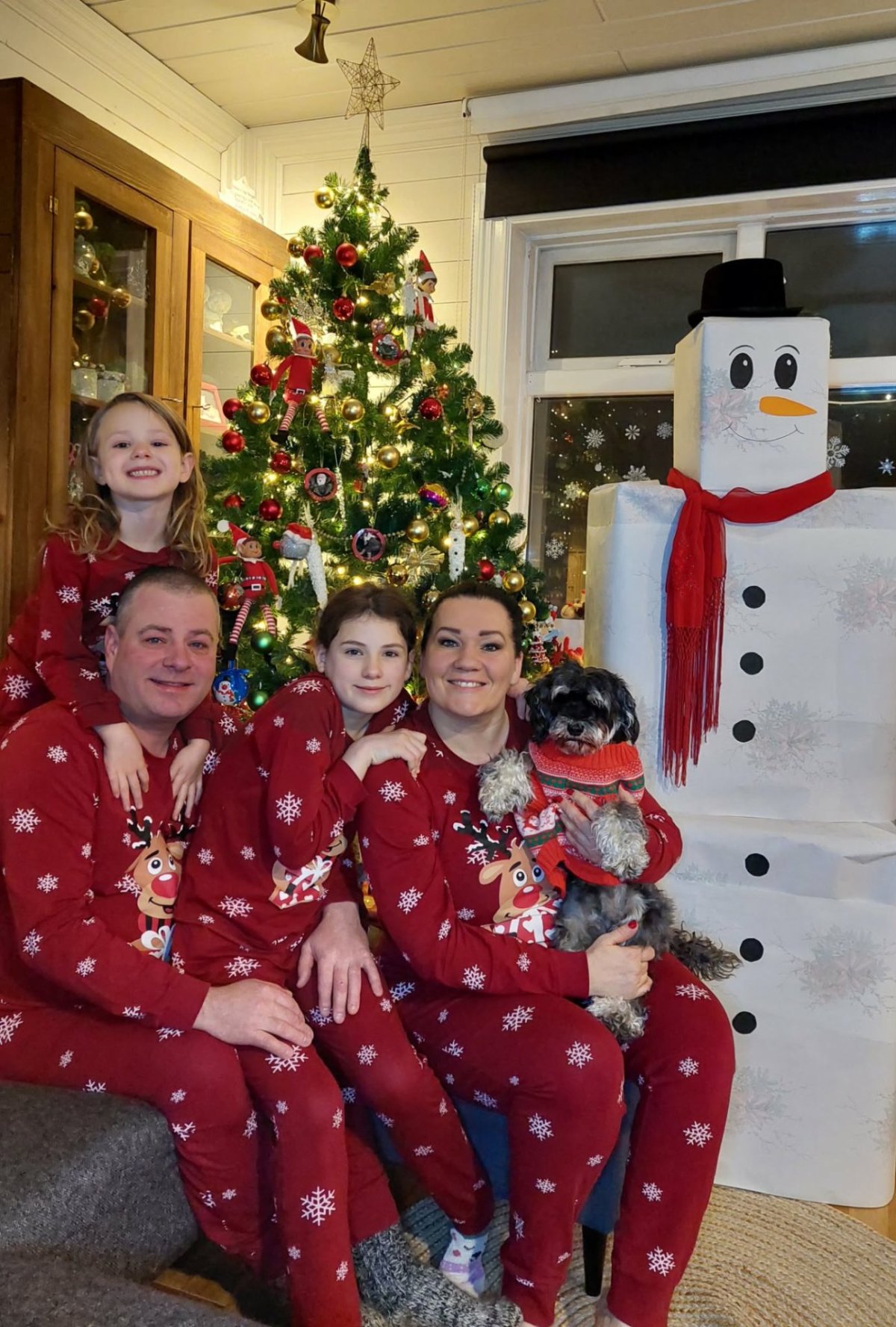 Fjölskyldan á jóladagsmorgun og þarna má sjá jólaveruna sem Raggý sagði okkur frá. MYND AÐSEND