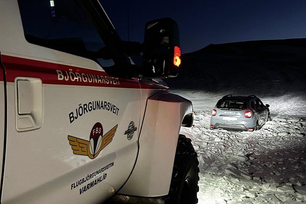 Í gærkvöldi aðstoðuð björgunarsveitamenn fólk sem hafði setið fast uppi í Mælifellsdal í Skagafirði í nokkra klukkutíma. Þurfti fólkið að ganga tæpa 10 km í allt að 18 stiga frosti til að komast í símasamband og fá aðstoð. „Gekk björgunin vel og héldu ferðalangarnir áfram með bros á vör en frekar kaldir,“ segir í tilkynningu á Facebook-síðu Flugbjörgunarsveitarinnar í Vamahlíð en félagar þaðan voru fyrstir á vettvang.