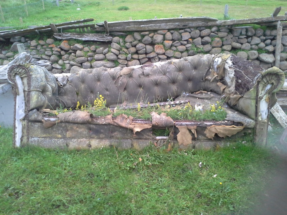 Það vantar ekki húmorinn í bloggfærslum Dr. Gunna. Í bloggi úr Skagafirði er meðal annars að finna þessa mynd ásamt tilheyrandi myndatexta: „Gamall Chesterfield sófi er þarna líka og má muna fífil sinn fegurri (þótt fíflarnir í honum hafi reyndar verið mjög fagrir).“