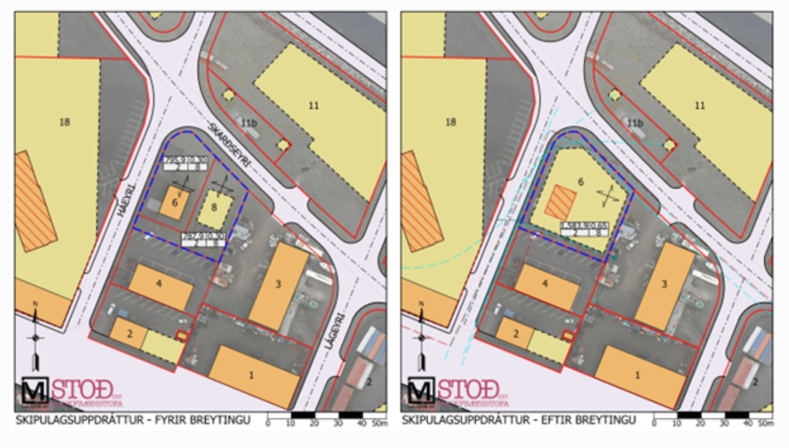 Breytingin sem hér um ræðir varðar innbyrðis lóðamörk á milli tveggja lóða, breytingu byggingarreits o.fl. Ekki er verið að breyta skipulags- og byggingarskilmálum né afmörkunum annarra landeigna. Meginmarkmið breytingar er að skapa grundvöll til uppbyggingar á svæðinu í samræmi við framtíðarhugmyndir lóðarhafa.