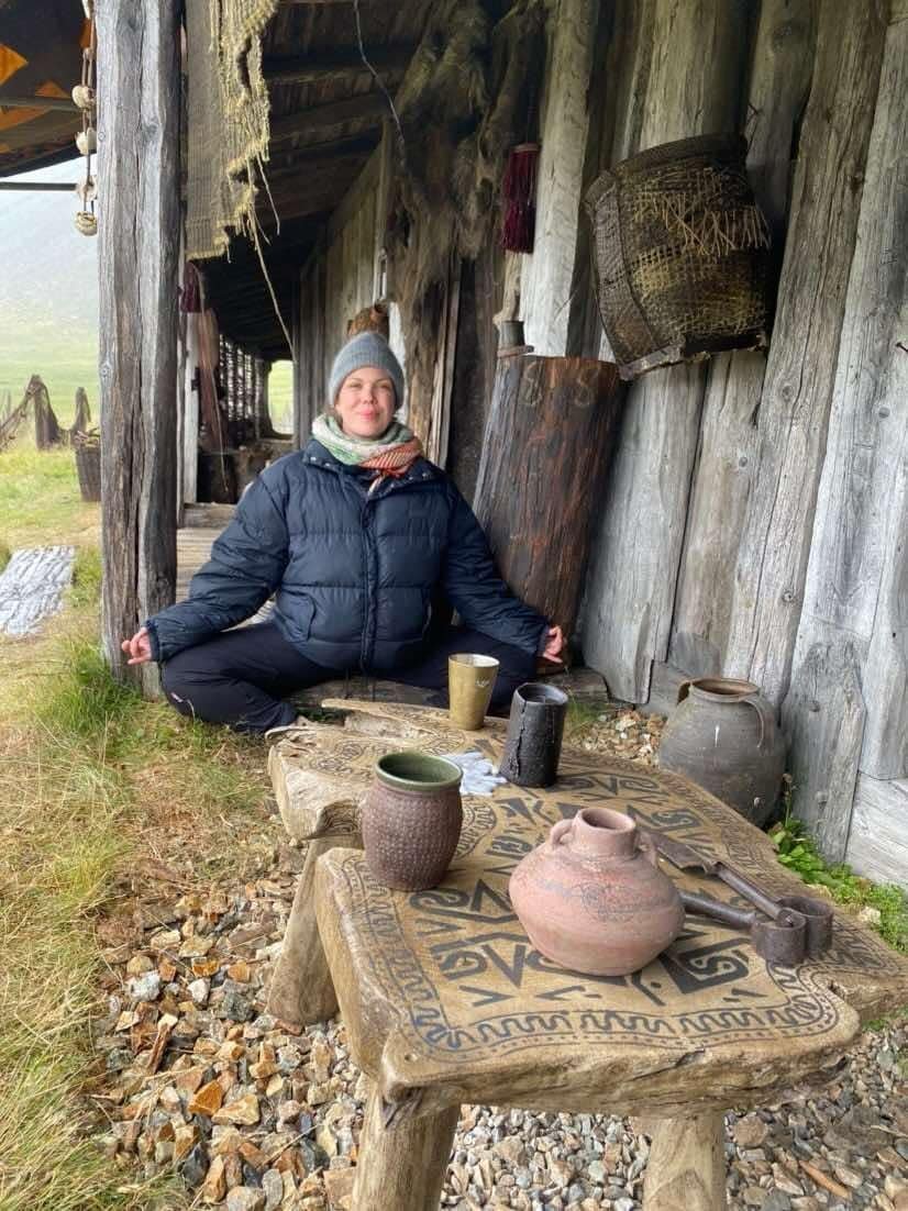 Tinna komin 8 mánuði á leið í tökum á Höfn í Hornafirði á sjónvarpsþáttunum The Lark/Witcher. MYND AÐSEND