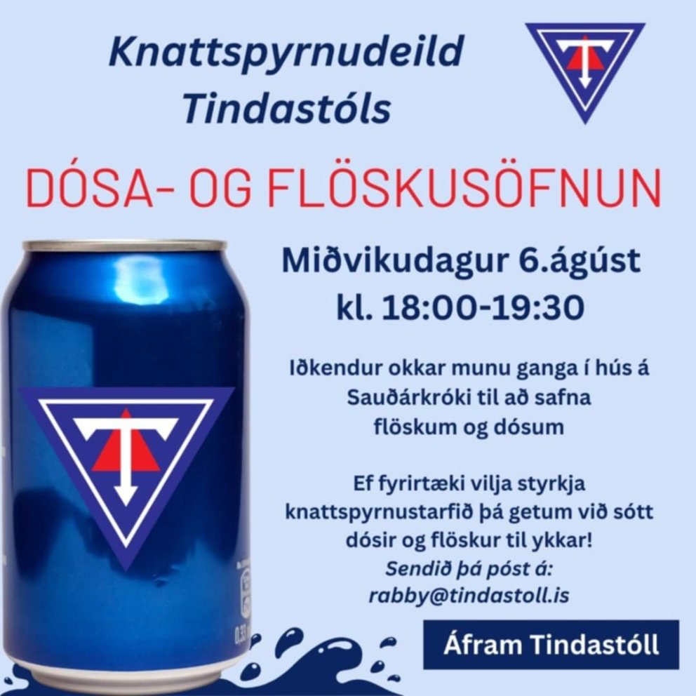 Í dag, miðvikudaginn 6. ágúst, milli kl. 18:00 og 19:30 verða iðkendur Tindastóls á ferðinni um Krókinn að safna flöskum og dósum. Ef fyrirtæki vilja styrkja knattspyrnustarfið þá er um að gera að senda póst á rabby@tindastoll.is