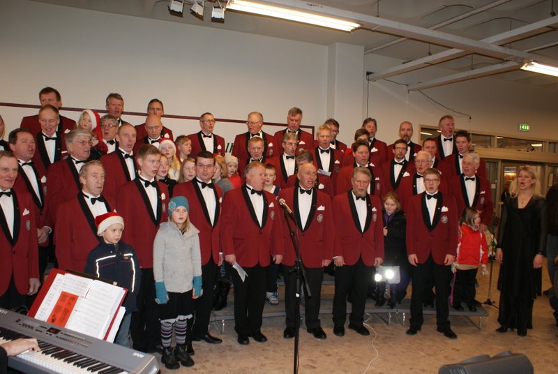 Karlakórinn Heimir tók lagið fyrir búðargesti Kaupfélags Skagfirðinga á Sauðárkróki í gær. Börn sem stödd voru í versluninni fengu að syngja nokkur jólalög með kórnum og skapaðist þar afar skemmtileg jólastemning.