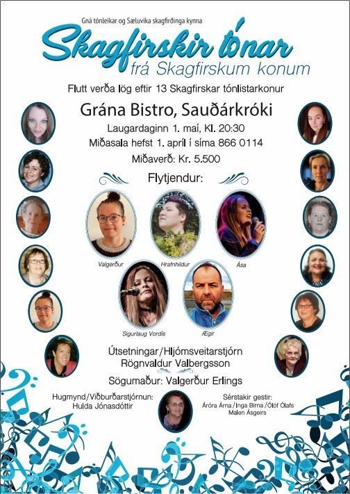 Nú er nánast uppselt á tónleikana Skagfirskir tónar sem Hulda Jónasdóttir stendur fyrir næsta laugardagskvöld á Gránu Bistro á Sauðárkróki en þar verða flutt lög eftir skagfirskar tónlistarkonur. Því hefur verið ákveðið að blása til aukatónleika sama dag kl 17. Hulda segir fólk hafa tekið vel í smá upplyftingu í lok Sæluviku og aðeins séu örfáir miðar eftir. Segir hún að félagar í Félagi eldri borgara í Skagafirði fái 50 % afslátt af miðaverðinu á þá tónleika svo það er um að gera að bregðast skjótt við og tryggja sér miða.