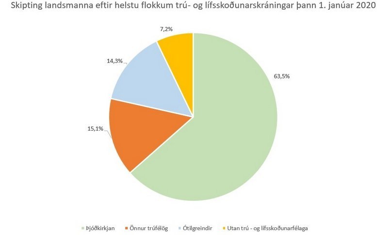 Fjölgun var mest í siðmennt eða um 655 manns á árstímabili 1. desember 2018 til 1. desember 2019 og um 620 í Kaþólsku kirkjunni meðan fækkaði um 1.518 manns í þjóðkirkjunni.