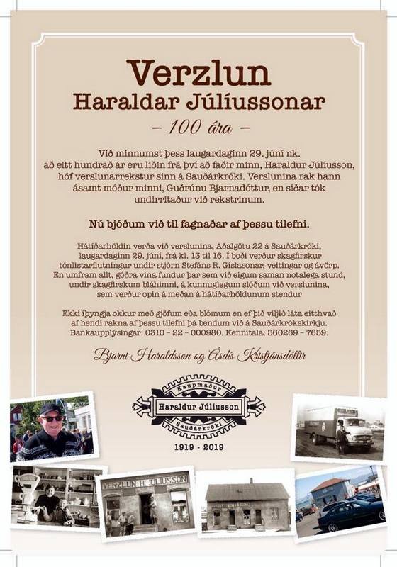 Verzlun Haraldar Júlíussonar, sem í daglegu tali Skagfirðinga er oftast kölluð Verslun Bjarna Har. eða bara Bjarni Har., fagnar aldar afmæli um þessar mundir. Í tilefni þess verður blásið til afmælisfagnaðar við verslunina næsta laugardag, 29. júní.