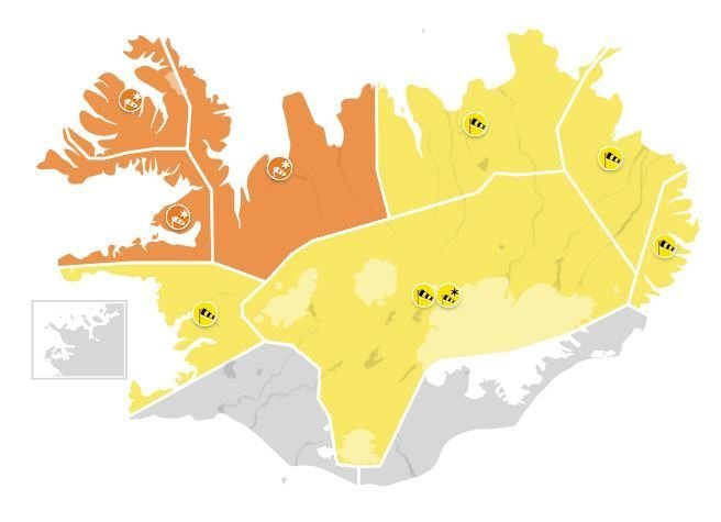 Veðurstofa Íslands varar við slæmu veðri í dag og á morgun en gefnar hafa verið út gul og appelsínugul viðvörun vestan og norðanlands. „Sunnan 15-25 m/s og rigning, hvassast norðan heiða, en síðan suðvestan 15-23 og él S- og V-til. Kólnandi, hiti víða 1 til 5 stig síðdegis. Suðvestan stormur eða rok og rigning eða snjókoma um tíma í kvöld,“ segir í spá dagsins.