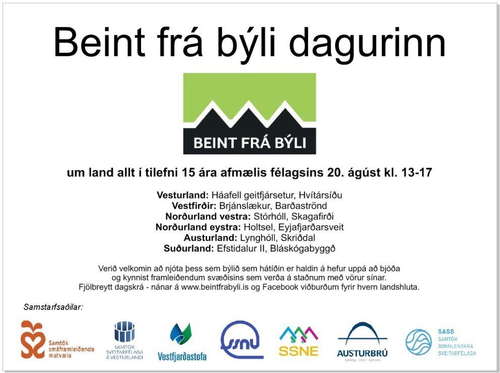 Í tilefni af 15 ára afmæli Beint frá býli félagsins, verður blásið til afmælishátíðar um land allt 20. ágúst.