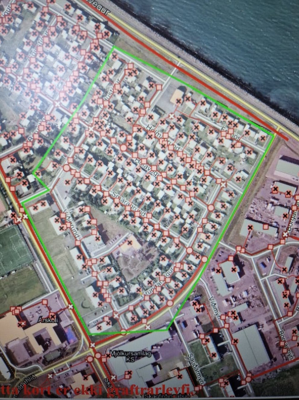 Svæðið sem dettur út er innan rammanns á meðfylgjandi mynd. Beðist er velvirðingar á þessu þjónustustoppi og óþæginundum sem þetta kann að valda notendum.