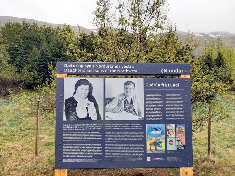 Í dag var lokið við uppsetningu á upplýsingaskilti um Guðrúnu frá Lundi, sem er hið fyrsta í röðinni "Dætur og synir Norðurlands vestra". Skiltið er staðsett í landi Lundar í Fljótum, fæðingarstaðar rithöfundarins en í dag eru einmitt 135 ár liðin frá fæðingu hennar.