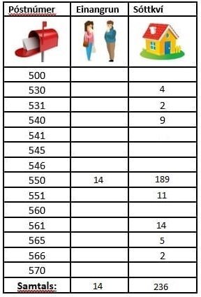 Nú sæta alls 236 manns sóttkví á Norðurlandi vestra, 78 færra en í gær. Flestir eru skráðir á Sauðárkróki eða 189 en voru 67 fleiri í gær eða 256.