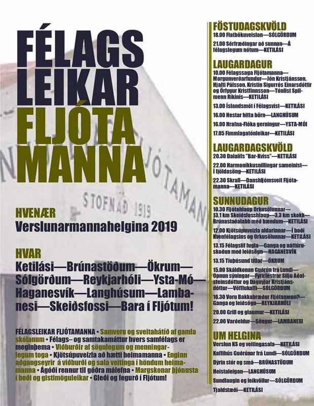 Sjöfn segir að með Félagsleikum sé verið að heiðra félagssögu Fljótanna og á laugardag klukkan 10 verður haldinn morgunverðarfundur á Ketilási. „Þar verður margt góðra gesta, m.a. Jón Kristjánsson, fyrrverandi ráðherra, og Hjalti Pálsson sem skrifar Byggðasögu Skagafjarðar, en hann vinnur núna að síðasta bindi hennar sem fjallar um Holtshreppinn í Austur- Fljótum.“