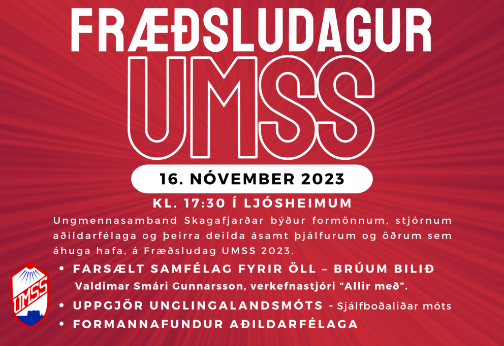 Fræðsludagur UMSS 2023 verður haldinn í Ljósheimum 16. nóvember og hefst hann kl. 17:30.
