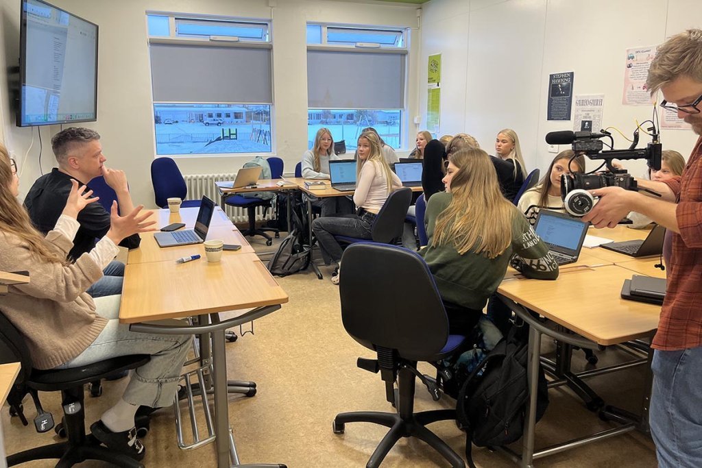 „Að þessu loknu voru upptökur og nemendur skiptust á að syngja inn raddir og fengu mjög góða leiðsögn frá Guðrúnu og Vigni,“ segir hún og við að gestirnir hafi haft mikinn vilja til að virkja allan hópinn. „Þau voru afar hvetjandi og jafnframt hissa á því hvað margir voru tilbúnir að spreyta sig. Deginum lauk svo með upptökum úti, í Staðarbjargavík og á brúnni við Pakkhúsið. Tökumaðurinn frá RÚV fékk svo aðstoð frá Dóra á Molastöðum sem mætti með drónann til að fullkomna gott tónlistarmyndband,“ segir Vala.